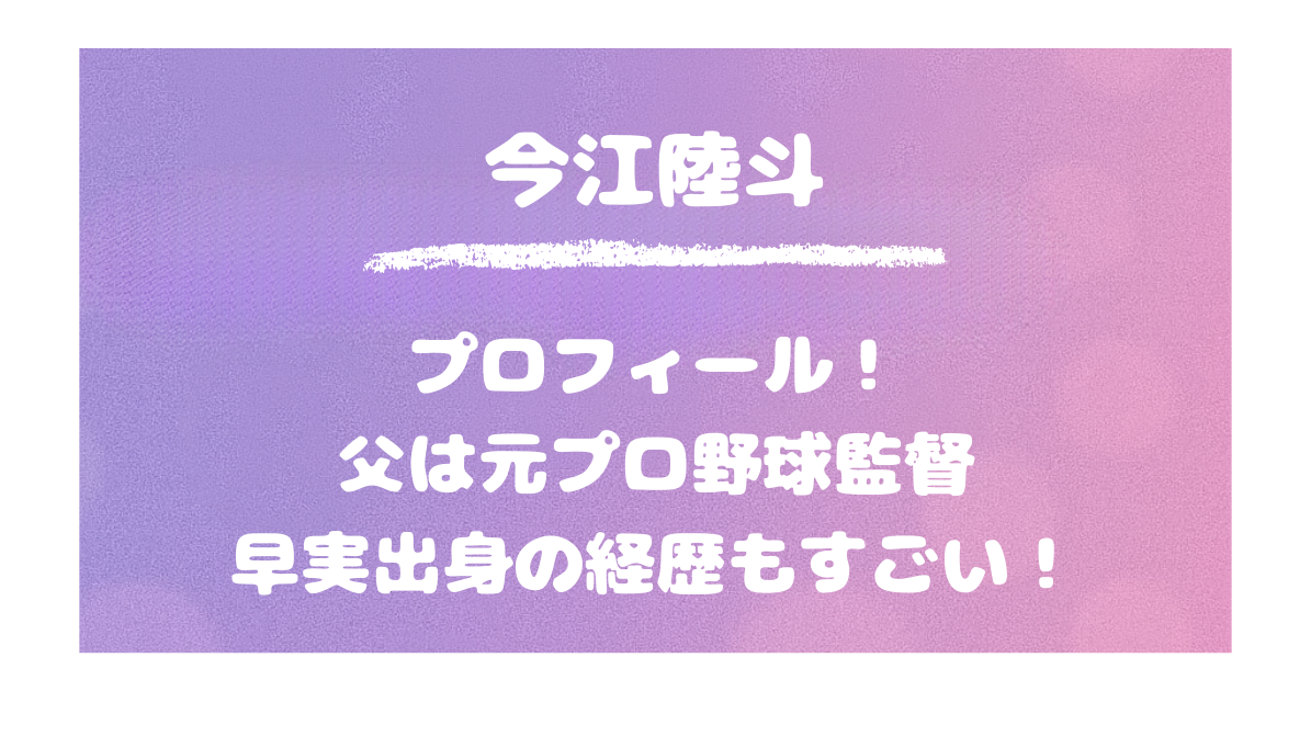 今江陸斗のプロフィールが話題!父は元プロ野球監督で早実出身の経歴もすごい!